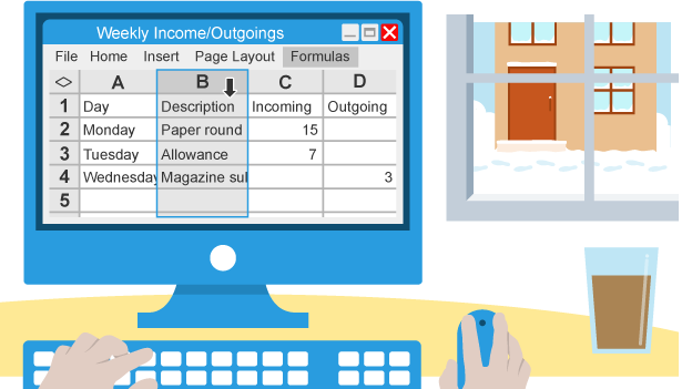 - It looks much better now but it needs a formula to work out how much money he’s left with at the end of the week.